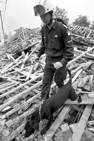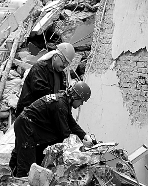 在四川灾区搜救。