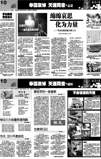 海南日报 举国哀悼 天涯同悲·志哀 010 2008-05-211 2008年05月21日 星期三