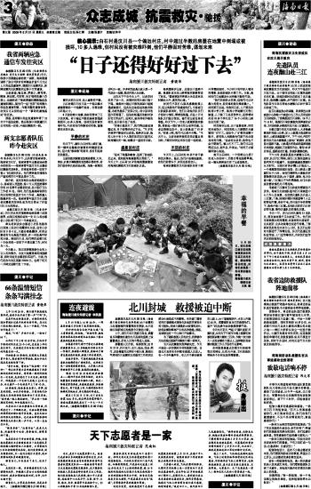 海南日报 众志成城 抗震救灾·驰援 003 2008-05-211 2008年05月21日 星期三