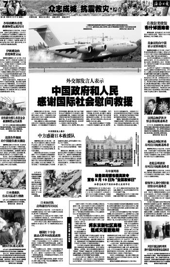 海南日报 众志成城 抗震救灾·综合 007 2008-05-211 2008年05月21日 星期三