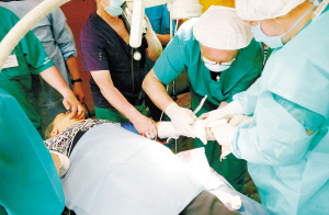 | 5月21日,俄罗斯医生为77岁的黄文芬老人做手术。当日,俄罗斯医疗队在地震灾区四川省彭州市开始救治伤员。新华社发