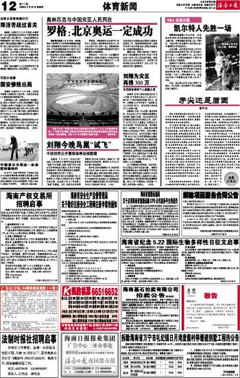 海南日报 体育新闻 012 2008-05-221 2008年05月22日 星期四