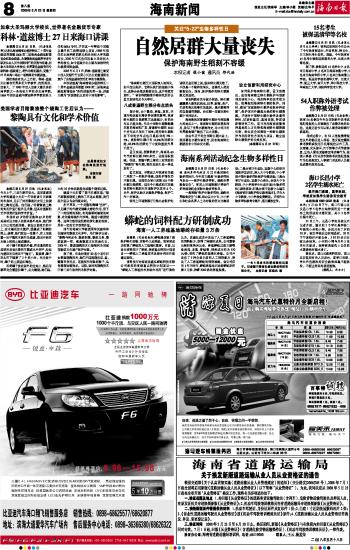 海南日报 海南新闻 008 2008-05-221 2008年05月22日 星期四