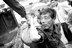 5月22日,北川南坝镇的一位受灾群众正往返乡的卡车上装行李。近日,部分灾区群众陆续离开集中安置点,返回被毁坏的家乡,准备重建家园。 新华社记者 裴鑫 摄