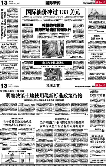 海南日报 国际新闻 013 2008-05-231 2008年05月23日 星期五