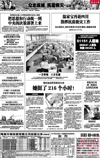 海南日报 众志成城 抗震救灾·最新 003 2008-05-231 2008年05月23日 星期五