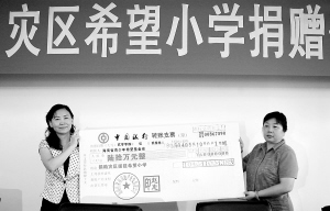今天上午,海南禧隆福房地产开发有限公司与海南美豪利投资有限公司分别向省希望工程各捐款60万元,用于在四川灾区援建3所希望小学,其中一所为“抗震希望小学”。该两公司董事长赵惠女士表示,自己最大的希望就是希望灾区的孩子早日重返校园。