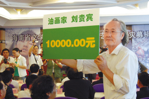 | 5月22日下午,海南省举行文艺界书画义卖赈灾募捐活动。 蒙钟德 摄 |