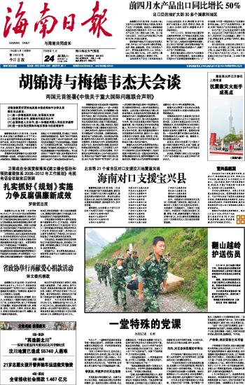 海南日报 头版 001 2008-05-241 2008年05月24日 星期六