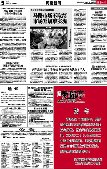 海南日报 海南新闻 005 2008-05-241 2008年05月24日 星期六