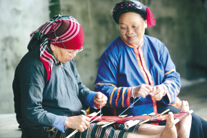 | 黎锦产业有望成为保亭农村增收的有效途径之一。图为该县两位黎族妇女在切磋黎锦编织技艺。 本报记者 苏晓杰 摄 |