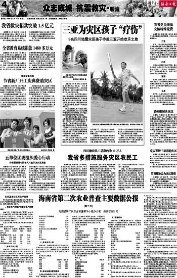 海南日报 众志成城 抗震救灾·暖流 004 2008-05-271 2008年05月27日 星期二