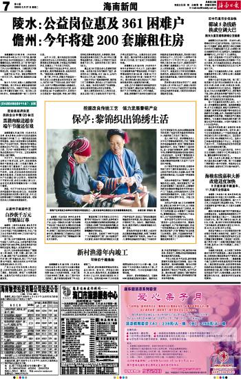 陵水:公益岗位惠及361困难户儋州:今年将建200套廉租住房