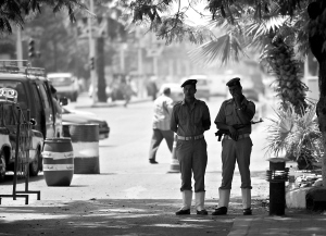 5月27日,两名埃及军事警察在首都开罗的街道上执勤。由于埃及反恐怖主义法案未能及时出台,埃及议会下院26日批准将本应于5月31日到期的紧急状态法案延长两年有效期。 新华社记者 张宁 摄
