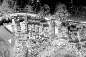 这是5月27日航拍的实行特别管制后的北川县城。由于北川随时可能再发生滑坡、泥石流等险情,为防止无关人员进入县城,并保护震后县城原貌,绵阳市抗震救灾指挥部报经四川省人民政府同意,于5月21日凌晨开始对北川县城实行特别管制。 新华社发