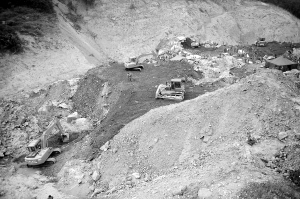 ↓ 5月26日,武警水电部队一总队官兵在唐家山堰塞湖附近紧张施工。随着大型机械的运入,四川绵阳唐家山堰塞湖排险工程全面展开。