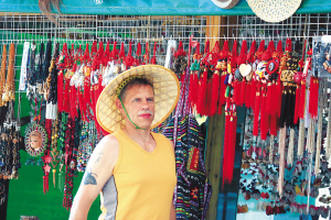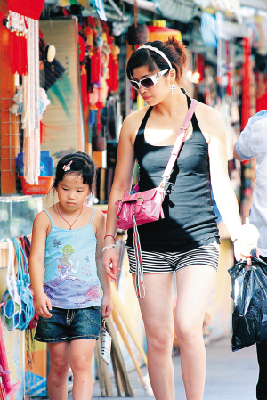鹿城即景 轻纱薄衣 弄清凉 5月27日,盛夏的三亚,阳光灿烂。在三亚街头,人们穿着也变得清凉起来,吊带装成了街头流行一景,连老外也戴起草帽。 特约记者 孙清 摄影报道
