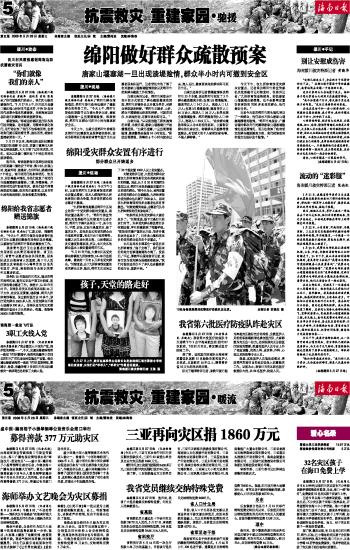 海南日报 抗震救灾 重建家园 005 2008-05-281 2008年05月28日 星期三