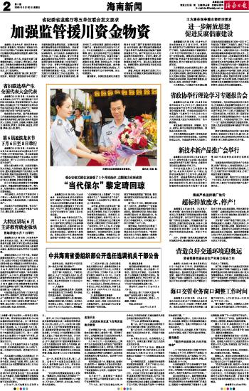 海南日报 海南新闻 002 2008-05-301 2008年05月30日 星期五