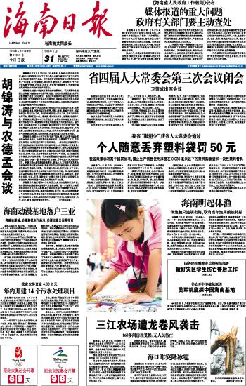 海南日报 首版 001 2008-05-311 2008年05月31日 星期六