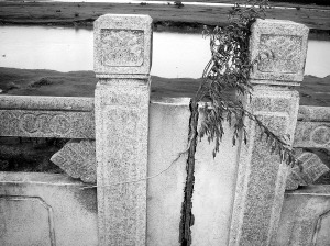 | 防洪堤北堤的护栏出现了三至五厘米的裂缝。