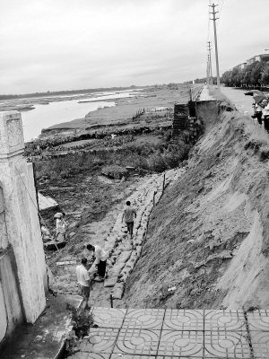 本报热线66810222消息 (记者吴棉)6月2日,记者接到读者报料称,南渡江定城段防洪堤北堤出现30米崩塌险情。当天下午记者赶赴现场看到,定城段防洪堤的一段30多米长的墙体完全崩塌,露出了黄泥土。人行堤路面不复存在,防洪堤护栏倒在南渡江河床内。