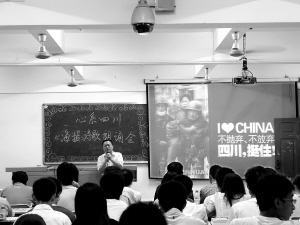 | 汶川地震后,海南的诗歌爱好者在海师举行“心系四川诗歌朗诵会”活动。 贾昊 摄 |