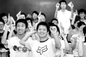 随着高考的临近,杭州新理想高复学校开设以小游戏、健身操等为内容的减压课,以便让考生们拥有一个轻松、快乐的心态应对高考。图为6月2日,学生们在放飞纸飞机放松心情。 新华社记者 徐昱 摄