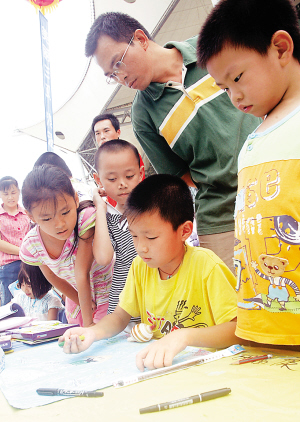 记者现场看到,儿童们在组委会的组织下,在指定的画板上画下自己的得意作品,有些小朋友描绘自己美好的家园,有些小朋友向往北京奥运会,绘画五个可爱的福娃。三亚市第八小学指导老师詹雪梅介绍,同学们听说书画比赛的消息后,都踊跃参加,仅第八小学就有40人参加。
