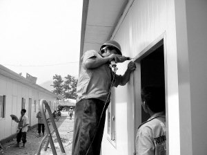 目前四川多数受灾群众只能住在临时搭建的简易帐篷内,为尽快使群众安居,灾区正在加快建设更加实用耐久的活动板房。 新华社发