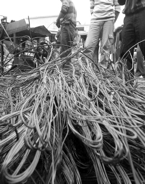 | 海口某废品收购站回收大量偷盗来的电线。 本报记者 古月 摄 |