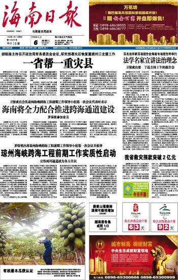 海南日报报业集团旗下媒体: 海南日报 | 南国都市报 | 南海网 | 南岛晚报 | 证券导报 加入收藏 | 设为首页