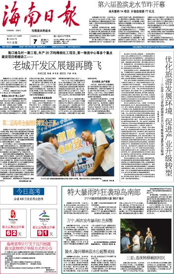 海南日报 头版 001 2008-06-071 2008年06月07日 星期六
