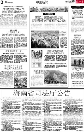 海南日报 中国新闻 003 2008-06-071 2008年06月07日 星期六
