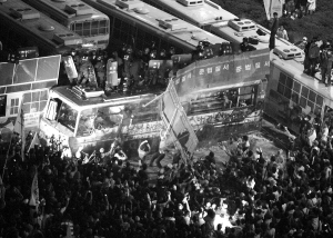 5月31日以来,韩国民众连续在首尔市中心举行抗议示威集会活动,且规模越来越大,并伴有冲击总统府、与警察发生冲突等过激暴力行为。8日早晨,从7日晚开始烛光守夜集会活动的抗议者再次与警察发生冲突。目前已有200多名示威者被捕,冲突造成约140人受伤。集会组织者“反疯牛病人民联盟”还发出传单,号召民众10日举行百万人大集会。