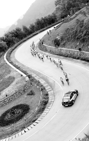 图为2007年11月9日,参加环岛赛的队伍经过五指山路段。