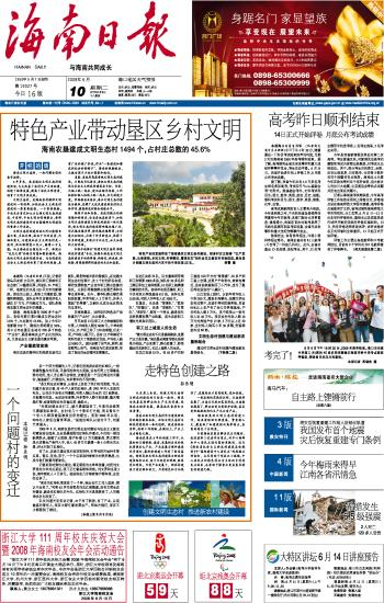 海南日报 首版 001 2008-06-101 2008年06月10日 星期二