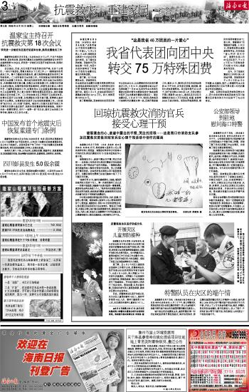 海南日报 抗震救灾 重建家园 · 综合 003 2008-06-101 2008年06月10日 星期二