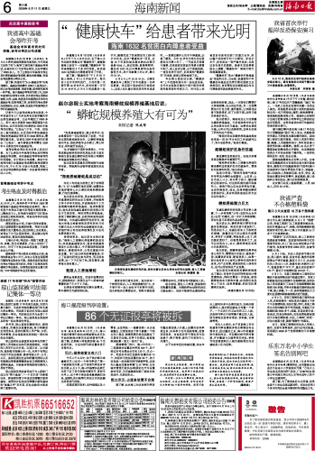 本报记者 陈成智 “我是搞基础理论、搞分类学的,在这里看到的一切让我改变了态度,今后我也想和海南高校合作,以蟒蛇养殖基地为平台,招收养殖专业的硕士、博士研究生,明年就开始招生。” 78岁高龄的中国科学院院士、中科院成都动物研究所研究员赵尔宓日前在海南文昌东盛弘蟒蛇科技有限公司蟒蛇养殖基地考察后对记者说。 赵尔宓是我国著名的两栖爬行动物学专家、两栖爬行动物学领域国际知名学者。 “海南养殖蟒蛇是成功的” 年近八旬的赵尔宓院士身子非常硬朗,“5·12”大地震时他在成都,地震发生后他穿着背心从三楼住所跑到操场避震,行动迅速果断。 赵尔宓此次来琼,是应海南师范大学邀请参加研究生论文答辩,并给海师大学子作学术报告。听说海南有个3万条规模的蟒蛇养殖基地,赵老特意到访。他先后到东盛弘蟒蛇科技有限公司位于文昌东阁、南阳的两处养殖基地,参观了蟒蛇孵化室、幼蛇饲养室和成蛇饲养室,与东盛弘蟒蛇研究所所长、海南大学张立岭教授和在研究所学习的内蒙古农业大学研究生赵静愉快交流,详细听取公司当前养殖情况及今后的发展思路介绍。 参观结束后,赵尔宓对本报记者说:“海南人工规模化养殖蟒蛇是成功的。我是搞基础理论的,原来觉得搞养殖没什么很大意义,今天看到养殖场规模很大、管理很科学,公司注重提升科技含量,专门成立研究所聘请教授,引入了在读的研究生参与研究,而且很有成果,这一下子打动了我。现在看来,搞养殖也很有意义。” 鼓励人工养殖蟒蛇 蟒蛇全身都是宝,目前市场需求巨大。据粗略统计,我国仅生产二胡每年就需蟒蛇皮干不少于3万条。 如果没有规模养殖支撑市场需求,野外捕蛇行为就很难杜绝。 接受本报记者采访时,赵尔宓有一个鲜明的观点:人工养殖规模的扩大,并不等于另一些人会收手不抓野外的蛇,因为养殖尚且需要成本,而野外捕捉是不需要成本的,只要有利可图就有人抓。 赵尔宓说,通过人工养殖,提高物种的数量和质量,对捕获野生动物来说压力就会减小,但还不能够完全避免野生动物受到伤害。因此,一方面我们需要扩大养殖规模,充分供应市场,另一方面需要加大打击力度,重罚重惩,让试图违法者不敢轻易抓,抓了也卖不掉。这样才能实现保护目的。 赵尔宓表示,海南有这么大的规模化蟒蛇养殖基地,今后他培养的学生可以将这里作为实习基地,如果学生表现不错,公司也可以选择录用,这样也实现了研究和生产挂钩。 “海南的同志在蟒蛇养殖基地里给我准备一间50平方米的工作室就可以了,我今后经常来。”赵老打趣说。 建蟒蛇保护区条件优越 建设蟒蛇自然保护区,在赵尔宓看来是加强保护的重要环节。 “海南具有发展人工规模化养殖和建设蟒蛇自然保护区的优越条件,要很好的发挥和利用。”赵尔宓说。 赵老分析说:“海南的地理气候条件非常适合蟒蛇生殖繁衍,山区多,山区市县人口少,受外界干扰少,建设蟒蛇自然保护区,对自然环境的破坏和影响小。海南中部山区生态多样性丰富,生态环境良好,因此,在海南建设蟒蛇自然保护区,具有我国其他地区所无法比拟的条件。” 蟒蛇养殖潜力巨大 东盛弘蟒蛇科技有限公司负责人透露,下一步将探索“公司+农民专业合作社+社员”的模式,进一步扩大养殖规模,带动文昌乃至周边市县农民致富。 赵尔宓认为,蟒蛇养殖只要有市场就有发展前途,现在市场不是饱和了,而是供应不上,东盛弘现有3万条蛇存栏规模,数量还远不足以满足市场需求,将来扩大规模,养殖品质上去了,蛇的斑纹更好了,价格更具竞争力了,还可以实现出口。总之,蟒蛇养殖还有很大的发展空间。 赵尔宓说,规模养殖蟒蛇如果单纯是公司行为,需要很大的地方、盖很多厂房、添置很多设备、配备很多人,如果一部分没有多少土地可以耕种的农民参与进来,对产业发展,提高农民收入很有好处,还可以带动相关产业发展。 赵尔宓还对海南现有蟒蛇养殖提出了建议:有条件的话把饲养室设计得更漂亮些;饲料仍需进一步提高,做到既降低成本又营养丰富;在选择优良品种上下功夫,培养更健康、蛇皮花纹更漂亮的品种。 (本报文城6月10日电) |