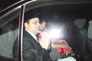 6月11日,在尼泊尔首都加德满都,尼泊尔前国王贾南德拉乘车离开纳拉扬希蒂王宫。尼泊尔内阁会议6月4日宣布决定,允许前国王贾南德拉在搬出加德满都市中心的纳拉扬希蒂王宫后,居住在首都近郊的讷格尔朱纳王宫。 新华社发(高塔姆摄)