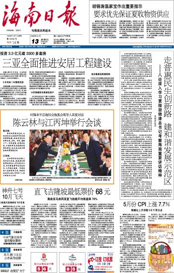 海南日报 首版 001 2008-06-131 2008年06月13日 星期五