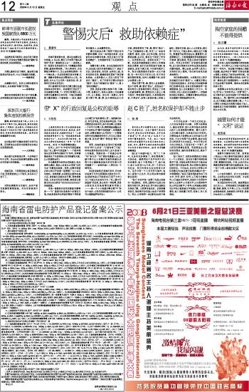 海南日报 观 点 012 2008-06-131 2008年06月13日 星期五