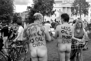 伦敦数百人裸体骑自行车呼吁环保