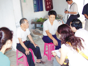| ↑海医“黎药抢救和发掘课题组”在陵水寻访黎族医生蓝生仁(左)。 |