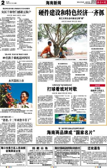 海南日报 海南新闻 002 2008-06-161 2008年06月16日 星期一