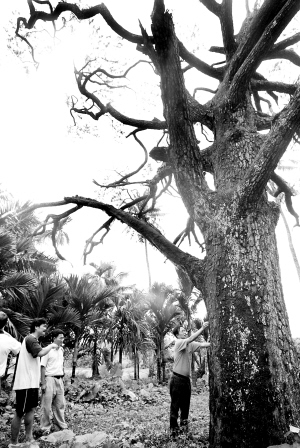 本报海口6月16日讯(记者范南虹 苏晓杰)《海口发现600龄海南松》一文今天见报后,引起海口市林业局关注。今天下午,该局派4名林业工作人员前往东昌农场18队,对600龄海南松进行会诊,并提出先灭白蚁后促生长的方法挽救这株珍稀的海南松。 实地考察完古松后,海口市林业局海秀林业中心工作站站长吴修忠告诉记者,松树材质坚硬,一般情况下,白蚁难以入侵。在过去数百年里,这棵古松多次遭遇强台风、雷击等自然灾害,导致一些枝桠被台风刮断或者雷击枯死,才使白蚁有机可乘,并慢慢将古松的大部分枝桠啃食致死。 吴修忠说,2005年8月,海口市在全市范围内开展了一次古树名木的全面普查,对普查发现的古树名木进行挂牌保护,普查鉴定建档的古树名木有1865株,一级古树仅有5株。因为东昌农场18队地处偏僻,且仅有8户人家,可能在调查中被遗漏了。“海南松现在我省分布范围较小,主要集中在五指山等大山区。在海口市内目前所知分布也只有这一株,实为罕见。”吴修忠还表示,他从事林业工作30多年了,今天还是第一次在海口看见海南松。 针对古松被白蚁围食的威胁,4名工作人员会诊后,提出分4步挽救古松方案。首先是查找白蚁的蚁穴;第二是消灭白蚁;第三是环绕古松1米内的范围挖沟,对树根灌施促根剂,促进古松生长;第四是对古松树身的伤口进行清创,然后涂上保护漆,以防白蚁再从伤口入侵。“虽然被白蚁啃食,但古松的健康状况还不错,只要能消灭白蚁,古松会慢慢恢复生机的。” 据了解,为了保护全市的古树名木,海口市制定了《海口市古树名木保护管理规定》。根据规定,该市对名木及树龄在300年以上的古树实行一级保护,也就是说东昌农场18队这株600年树龄的海南松应采取一级保护措施。因此,吴修忠告诉记者:“此次考察后,我们将立即对古松挂牌,采取严格的保护措施。” |