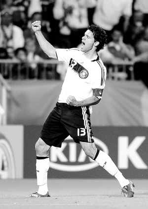 | 巴拉克为德国队打入致胜进球后庆祝。