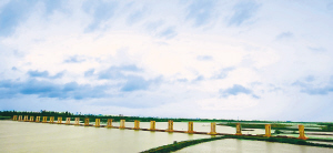 海口特大桥是全线的重点控制工程,全长21公里。记者在施工现场看到,工程施工已全线铺开,钻机、挖掘机同时上阵,掘孔钻桩、掘土、浇灌混凝土,施工场面好不热闹。记者在现场看到,全线已有50多座墩柱拔地而起,占总量628座的8.9%。