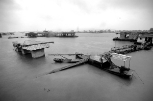 图为成为一片汪洋长沙市旅游客运码头。16日23时,湘江长沙段迎来今年以来最高洪峰。 新华社发 |