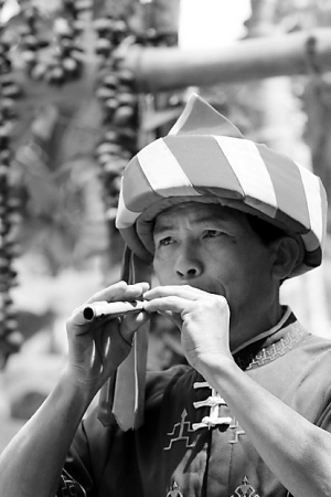 | 黎族传统乐器口拜(左)、鼻箫(右)。 |